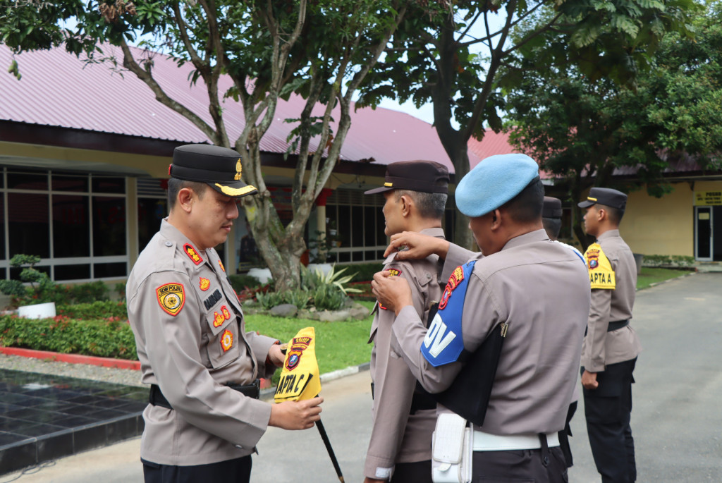 Binjai,Wahananews.co | Kapolres Binjai AKBP Bambang C. Utomo, S.H., S.I.K., M.Si., mengukuhkan Nomenklatur Pamapta SKPT Polres Binjai dilapangan apel polres Binjai, jalan Sultan Hasanuddin No.1 Binjai., Jumat (17/10/2025).