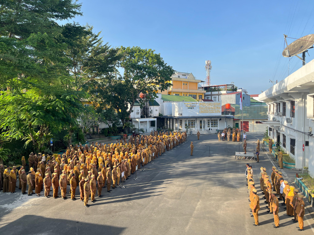 Binjai,Wahananews.co | Staf Ahli Wali Kota Binjai Bidang Ekonomi, Keuangan, dan Pembangunan, dr. Heri Hendri, memimpin apel gabungan Aparatur Sipil Negara (ASN) dan Non ASN Pemerintah Kota Binjai di Lapangan Apel Pemko Binjai, Senin (02/02). Apel gabungan tersebut dilaksanakan oleh Sekretariat DPRD Kota Binjai. Apel gabungan ini diikuti oleh para Staf Ahli, Asisten, Kepala OPD, Camat, Lurah, serta seluruh ASN dan Non ASN di lingkungan Sekretariat Daerah Kota Binjai.