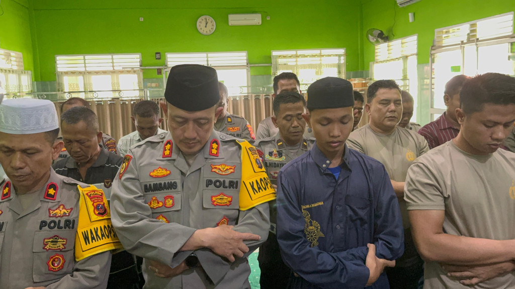 Binjai,Wahananews.co | Personil Polres Binjai melaksanakan shalat ghaib untuk para korban meninggal dunia akibat bencana alam banjir dan tanah longsor yang melanda Aceh, Sumatera Utara dan Sumatera Barat serta beberapa daerah di Indonesia, Kamis (4/12/2025)