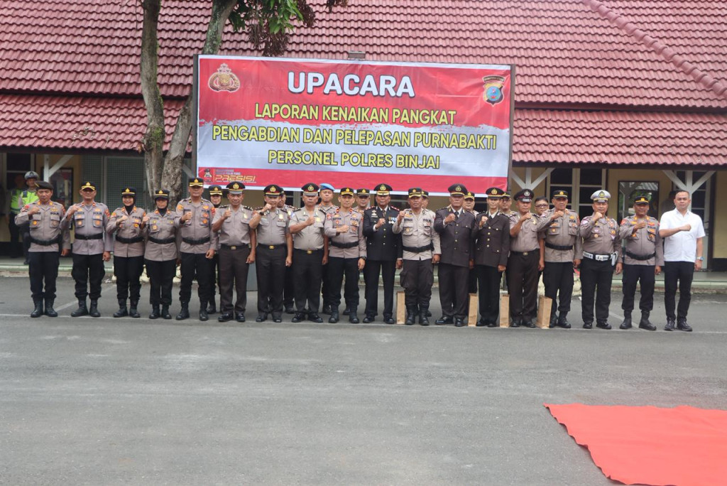 Binjai,Wahananews.co | Kepolisian Resor Binjai, Polda Sumatera Utara melaksanakan upacara kenaikan Pangkat Pengabdian dan pelepasan terhadap personil yang memasuki masa Purnabakti, di lapangan apel polres Binjai, jalan Sultan Hasanuddin No.1 Binjai, Jumat (30/01/2026) pukul 16.30 wib.