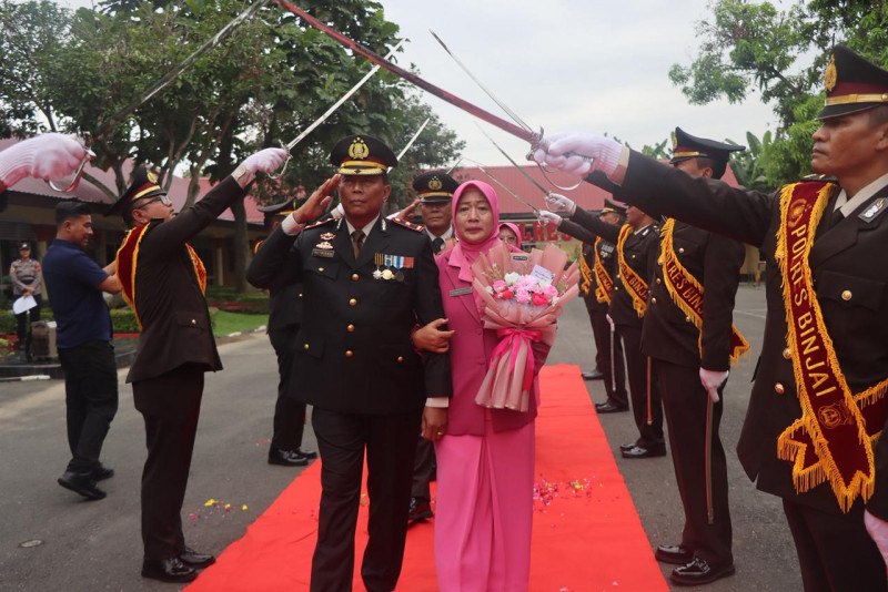 " Momen yang penuh haru ini, kita dapat melepas rekan-rekan terbaik kita yang telah menyelesaikan masa tugasnya di institusi kepolisian khususnya di lingkungan Polres Binjai, yang mana semasa tugasnya dapat bekerja penuh dedikasi, loyalitas dan integritas,